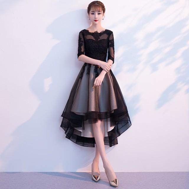 パーティードレス結婚式二次会ワンピース結婚式お呼ばれドレス袖あり大きいサイズ黒ワンピースレース10代代黒ドレスブラック 通販 Lineポイント最大get Lineショッピング